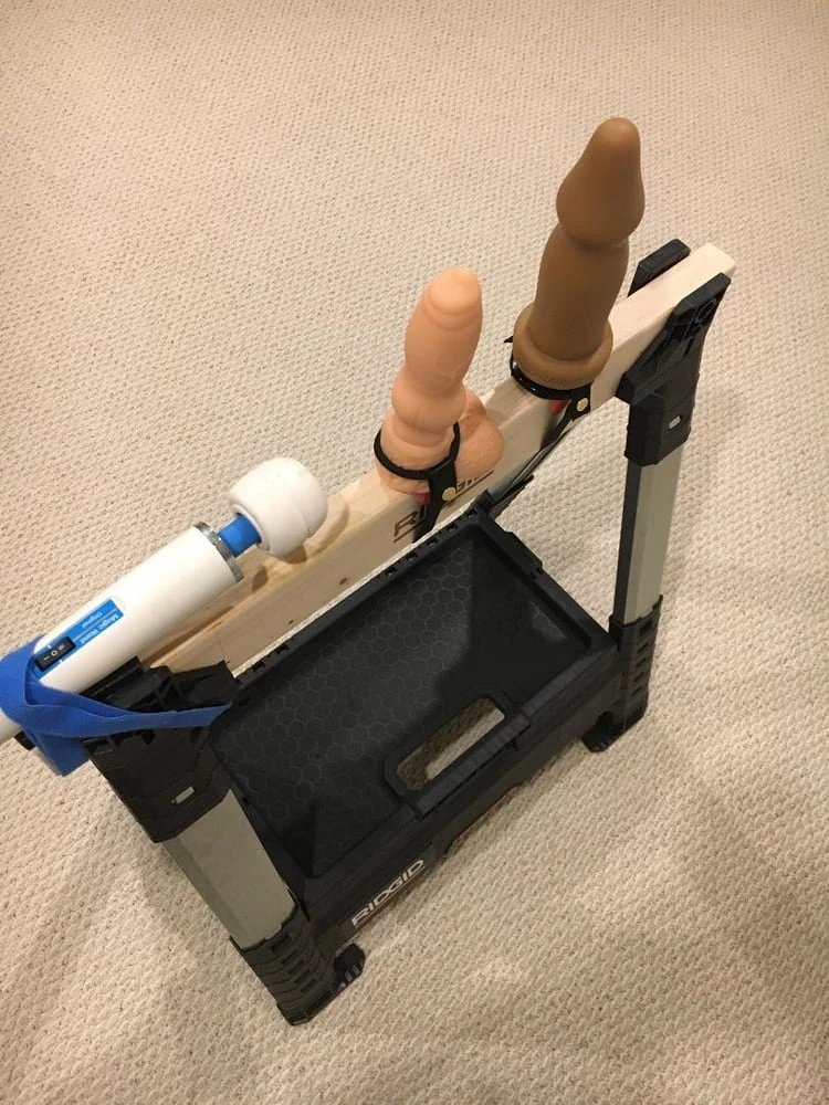 My newly redesigned 3D printed toy holder for my fucking machine. With my favorite toy attached. I created the 3D model if anyone is interested in the model I would be willing to share it.